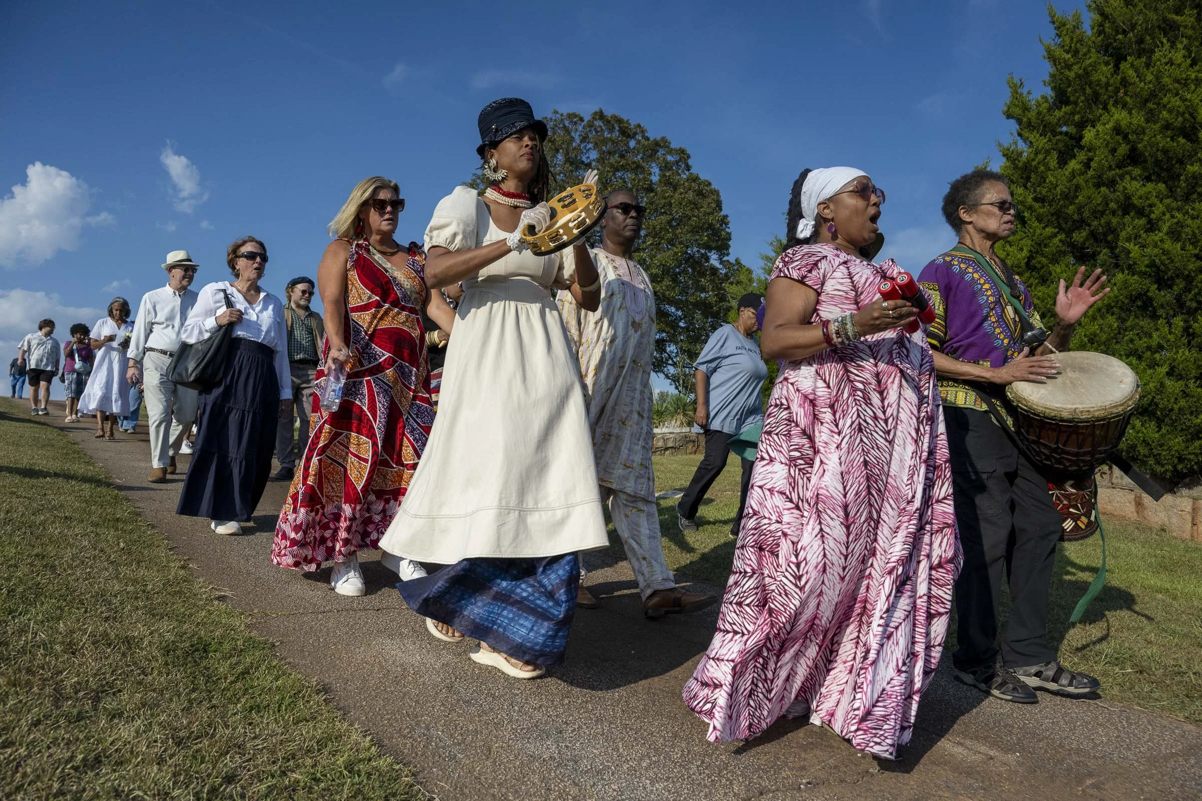Image of the procession into the historic burial grounds of Atlanta’s first freedfolk, by Atlanta Photographer, Julie Yarbrough.