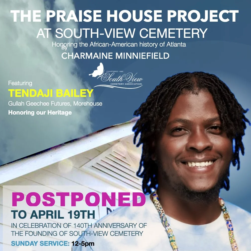 Images are by Julie Yarbrough of Charmaine Minniefield at South-View Cemtery, Tambra Omiyale Harris of Giwayen Mata and Edeliegba Senior Dance Ensemble. Moving images of the Praise House prvoided by Skyview Soren Christiansen of SkySee Videos.