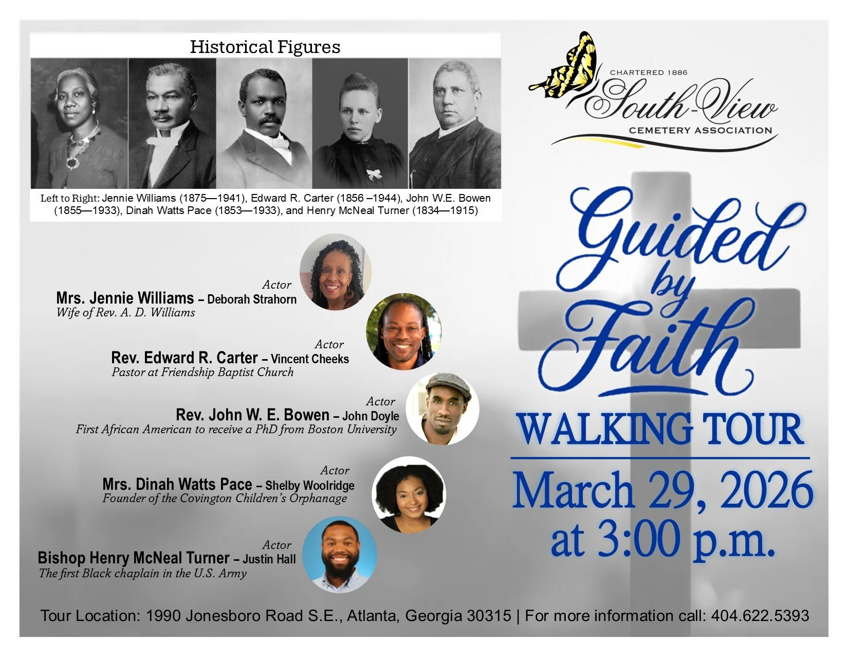 In February 1886, nine courageous Black businessmen including Jacob McKinley, George W. Graham, Robert Grant, Charles H. Morgan, John Render and Albert Watts petitioned the State of Georgia for a charter to establish a cemetery. The charter was granted in April of the same year and the legacy of South-View Cemetery began.”