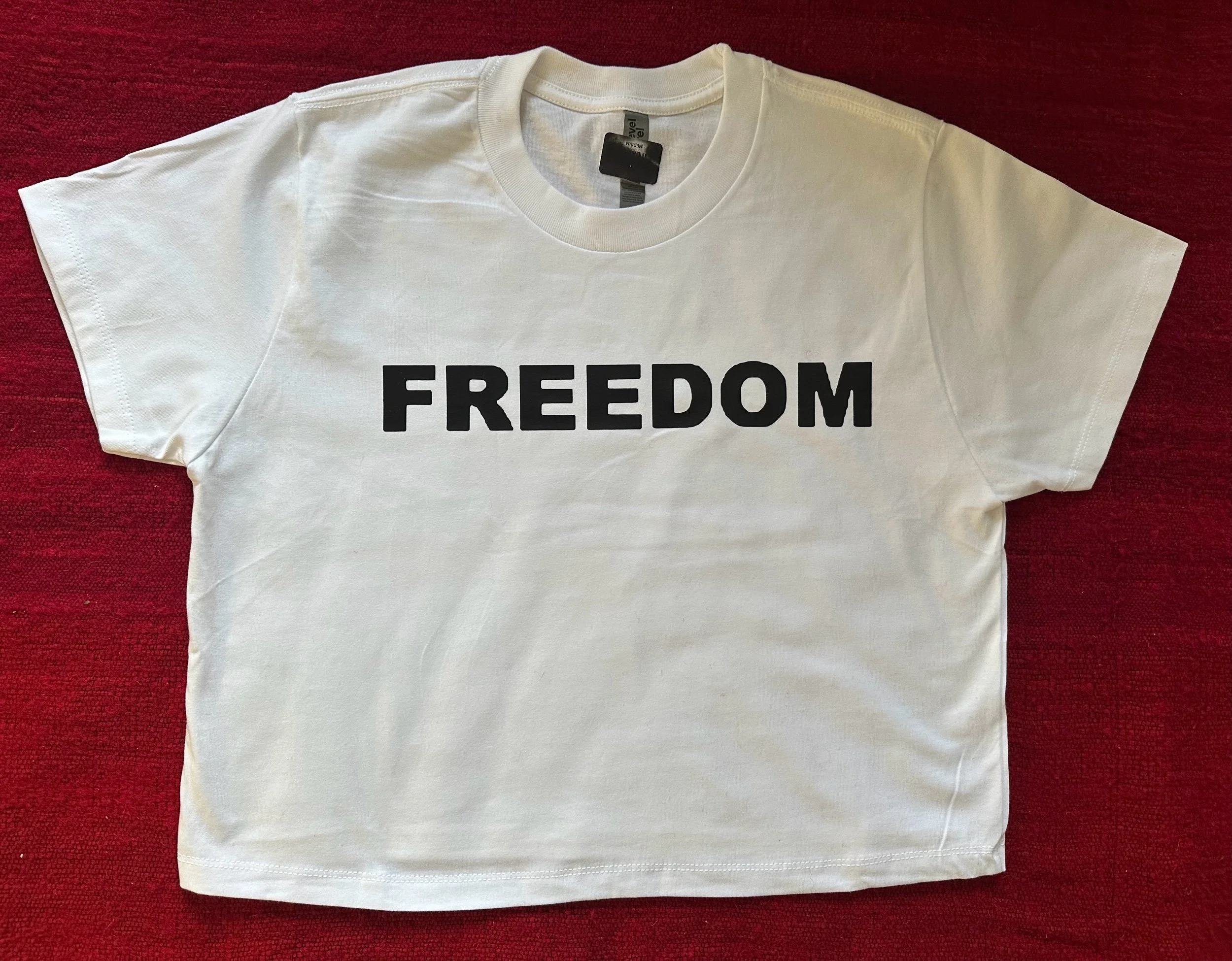 Shop › White Freedom Crop Top T Image 1 of 2 Image 2 of 2 White Freedom Crop Top T $0.00 %100 cotton - women sizes Size: Small Medium Large X Large Quantity: Add To Cart Added! %100 cotton - women sizes